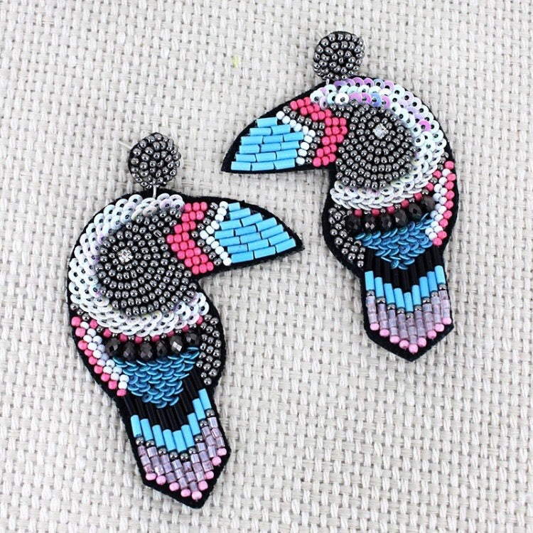"Toco" Toucan Tropical Bird Bead & Sequin Statement Earrings--Handcrafted