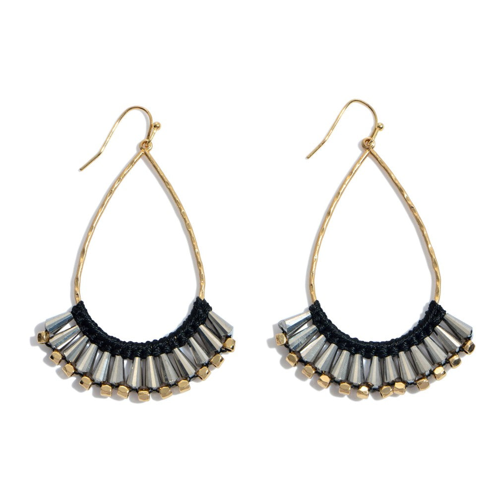 "Theodora" Thread-Wrapped Beaded Teardrop Hoop Earrings