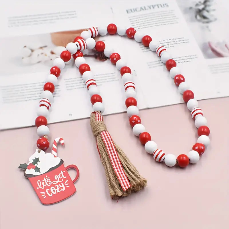 "Let's Get Cozy" Farmhouse Wood Bead Garland