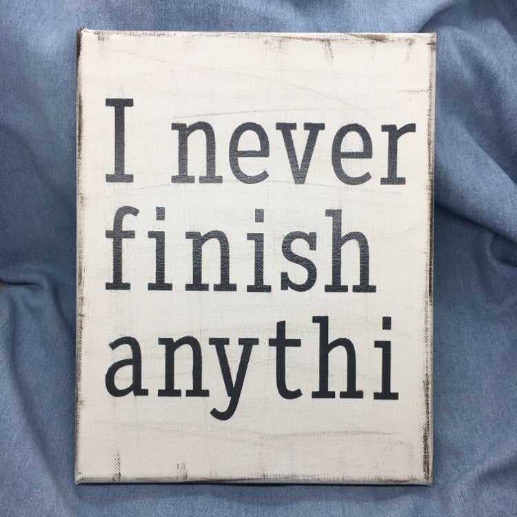 "I never finish anythi" Handcrafted Canvas Print 8" x 10"