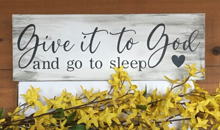 "Give it to God and Go to Sleep" Handcrafted Wood Sign -- 5.5" x 16"