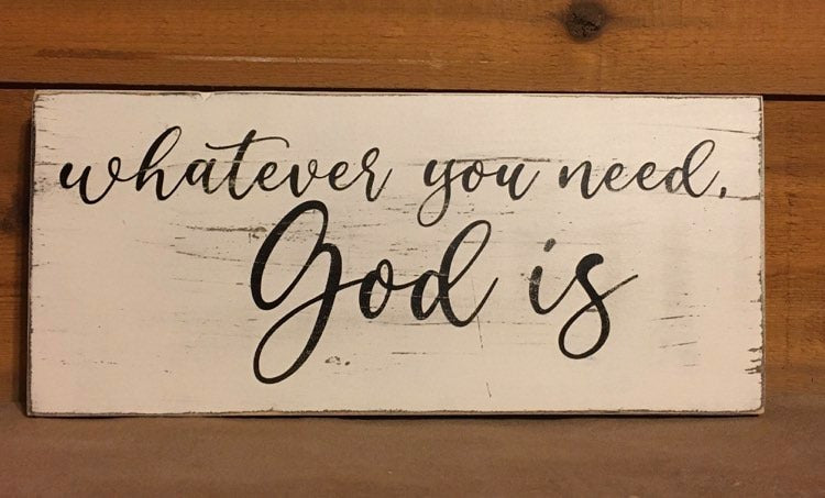 "Whatever You Need, God is" Handcrafted Wood Sign -- 5.5" x 12.5"