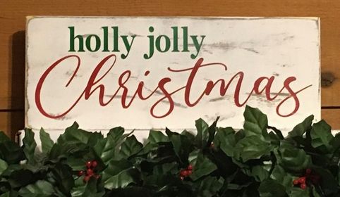 "Holly Jolly Christmas" Handcrafted Wood Sign -- 5.5" x 14"